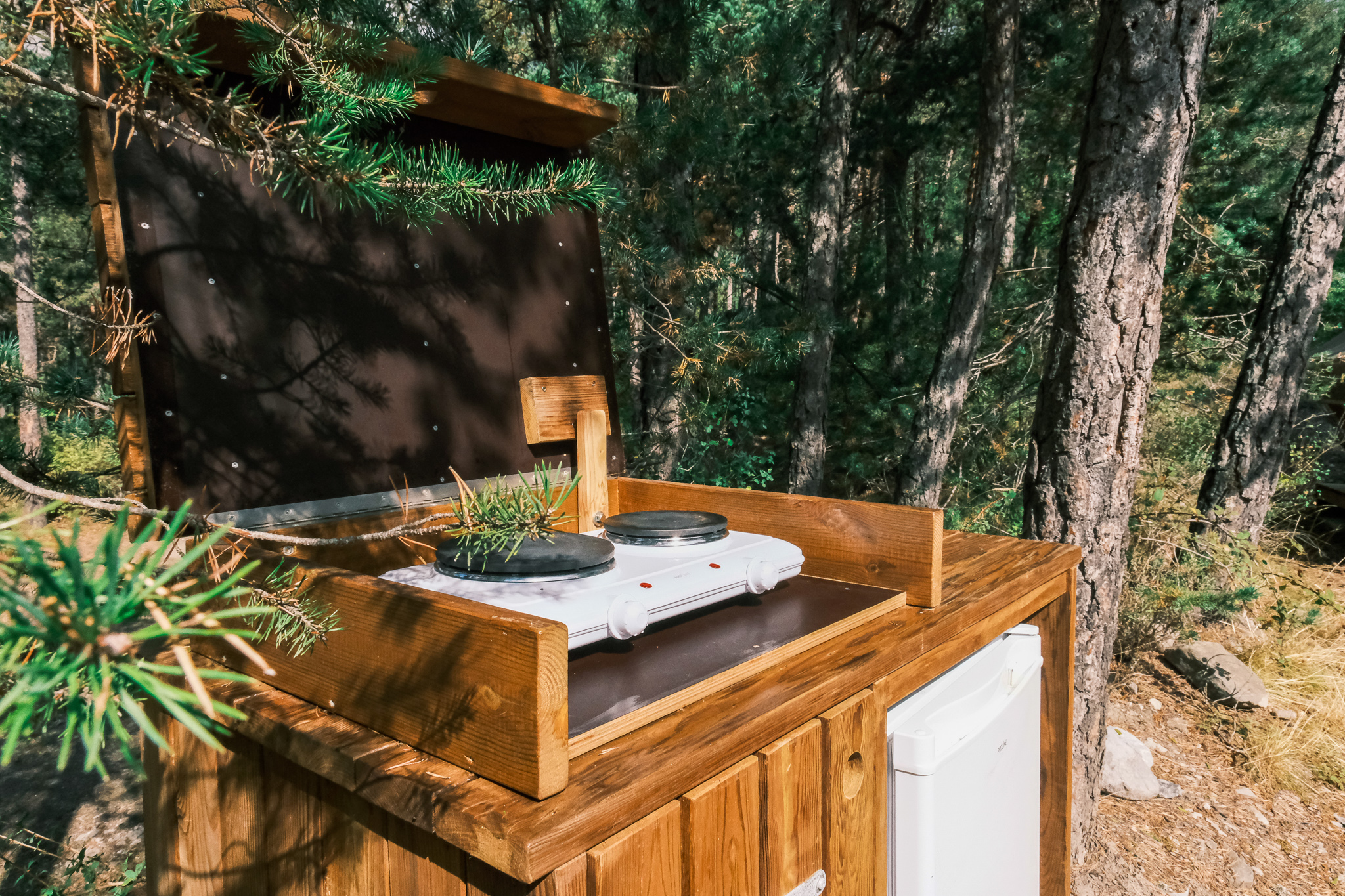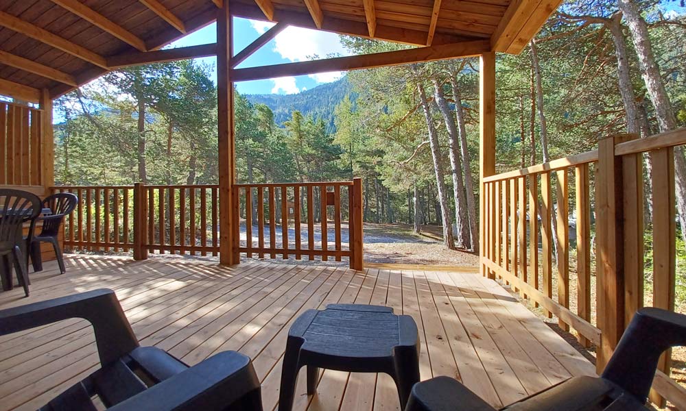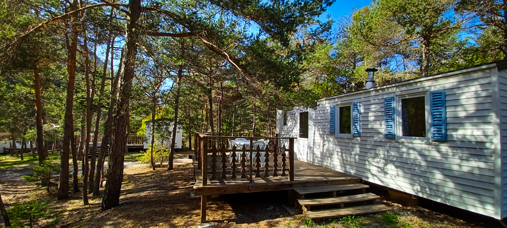 Chalets, Mobilheime, Zeltlodges und Wohnwagen befinden sich im Herzen eines Fichten-, Lärchen- und mediterranen Kiefernwaldes. Großzügig ausgelegt, sind alle mit einer großen Sommerterrasse ausgestattet.